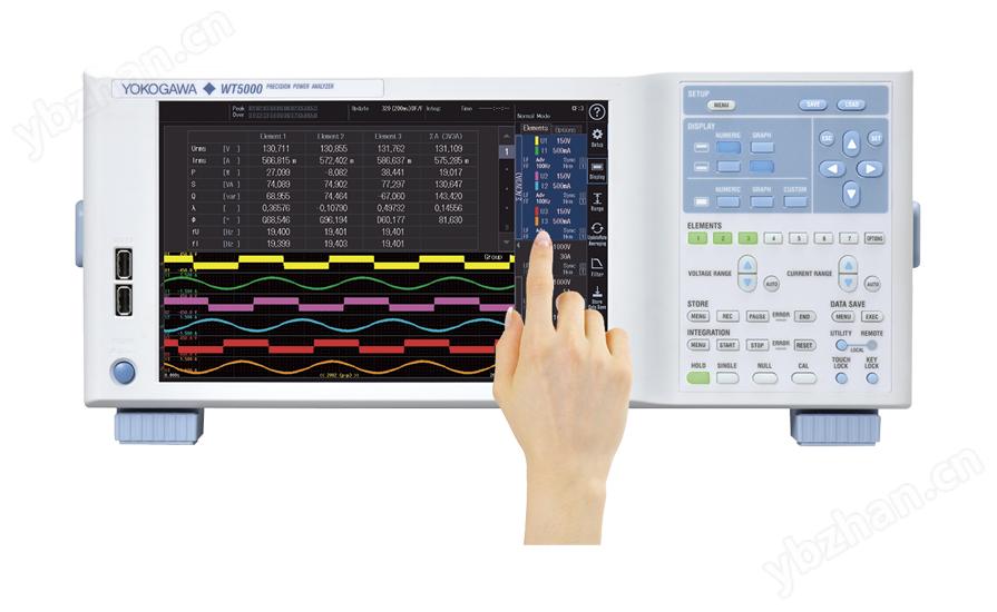WT5000支持獨立的觸屏和硬件按鍵操作,流暢直觀的體驗讓連接、配置和測量比以往更簡單。 10.1英寸的WXGA觸屏即使在電機和變頻器等高噪音環境中依然保持優秀的抗干擾能力。